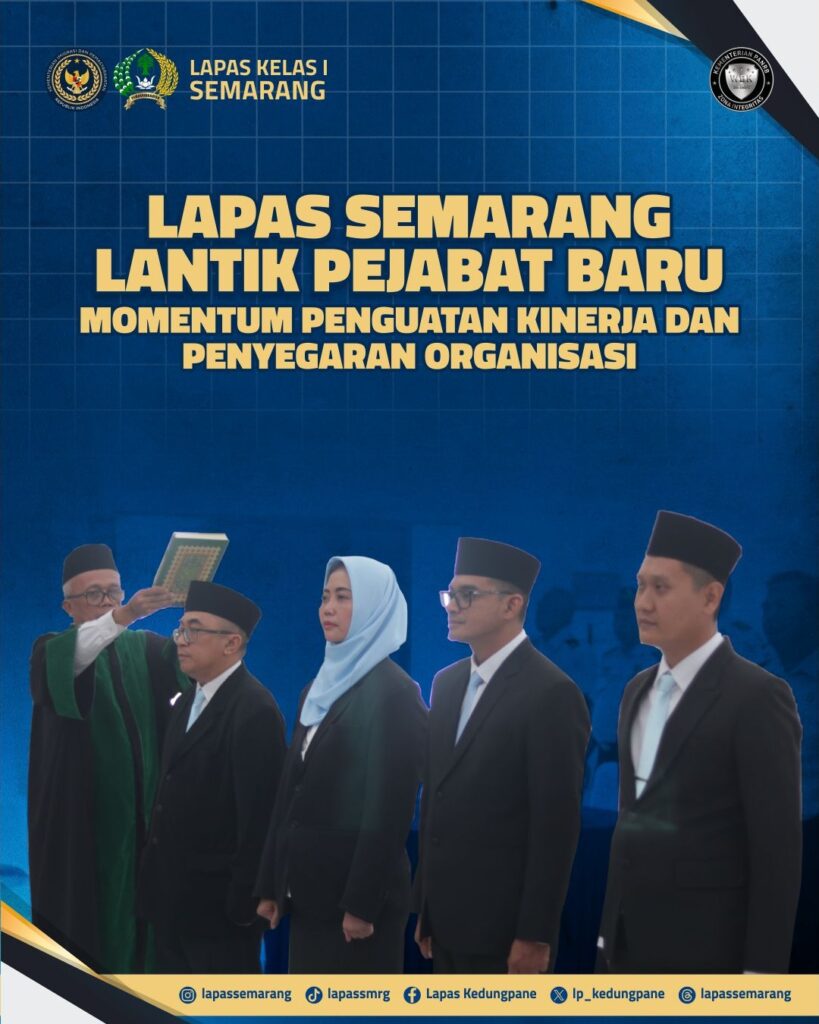 “Pelantikan ini merupakan bagian dari proses regenerasi serta penguatan organisasi. Kami berharap pejabat yang baru dilantik dapat segera beradaptasi, memahami tugas dan tanggung jawabnya, serta mampu memberikan kontribusi nyata dalam meningkatkan kinerja Lapas Kelas I Semarang,” ujar Ahmad Tohari.
