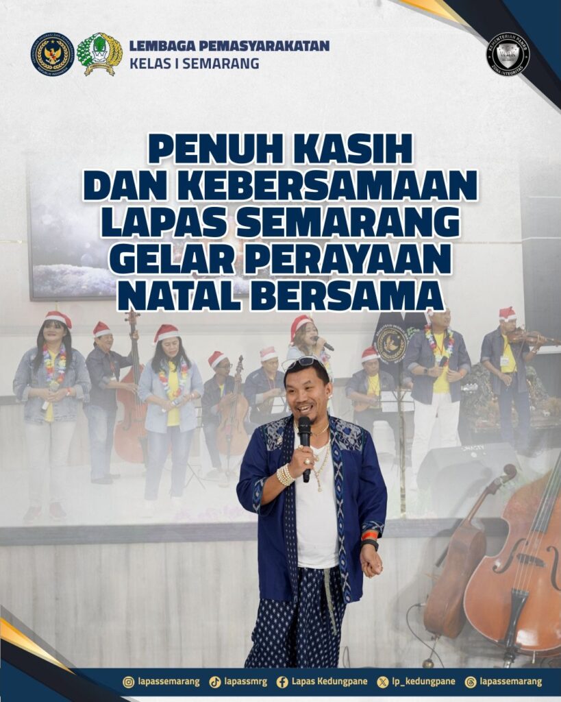 Selain ibadah dan perayaan bersama, kegiatan ini juga diisi dengan pemberian tali asih kepada Panti Asuhan Wikrama Putra Semarang sebagai bentuk kepedulian sosial. Suasana semakin hangat dengan kehadiran bintang tamu komika Mongol, yang menyampaikan pesan motivasi kepada warga binaan agar mampu memaknai masa lalu sebagai pembelajaran dan menatap masa depan dengan lebih baik.