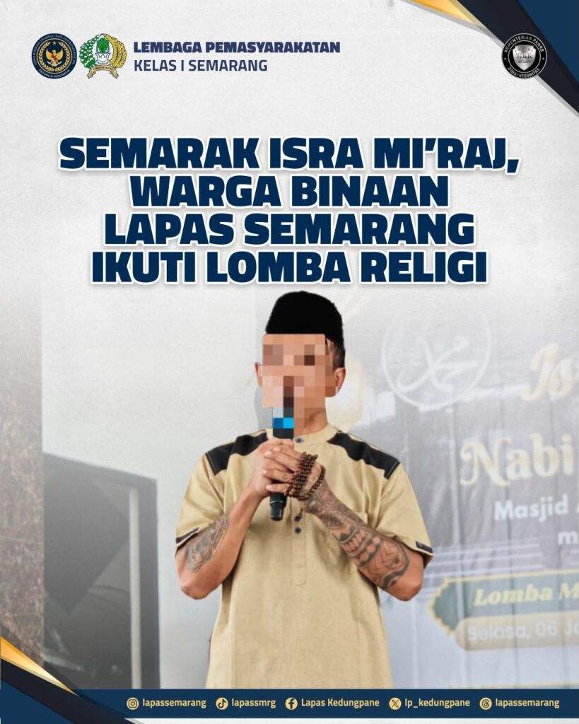 Perlombaan kerohanian antar Warga Binaan ini merupakan bagian dari program pembinaan kepribadian yang secara rutin dilaksanakan oleh Lapas Kelas I Semarang, sekaligus menjadi sarana untuk menyemarakkan salah satu hari besar umat Islam. Dalam rangka peringatan Isra Mi’raj Tahun 1447 H yang bertepatan dengan Tahun 2026, jajaran bidang pembinaan telah mengagendakan sejumlah kegiatan dan perlombaan bernuansa religius sebagai upaya penguatan nilai-nilai spiritual di lingkungan pemasyarakatan.
